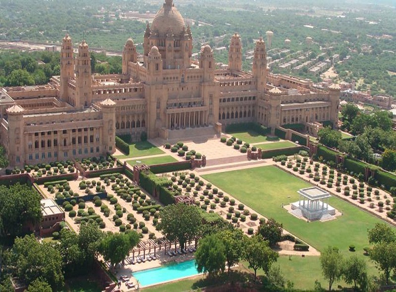 The Umaid Bhawan Palace at Jodhpur, India's last great Palace, was constructed between 1929 and 1944. Constructed in what can loosely be described as the Indo-Art-Deco style, this magnificent edifice with 347 rooms is the world's largest private residence when it opened its doors as a royal residence in 1944. Named after The Late His Highness Maharaja Umaid Singhji, the palace has been the residence of Maharaja Umaid Singhji and his successors. The Central Dome soars 110 feet overhead, and provides spectacular centerpiece - a focal point for all the visitors to the property . The view from the Pillars, especially at sunset, are spectacular. Landscaped gardens adorn the exteriors of the building and the spacious lawns at the rear of the Palace create an ambience which is at once serene, restful and yet spectacularly royal.